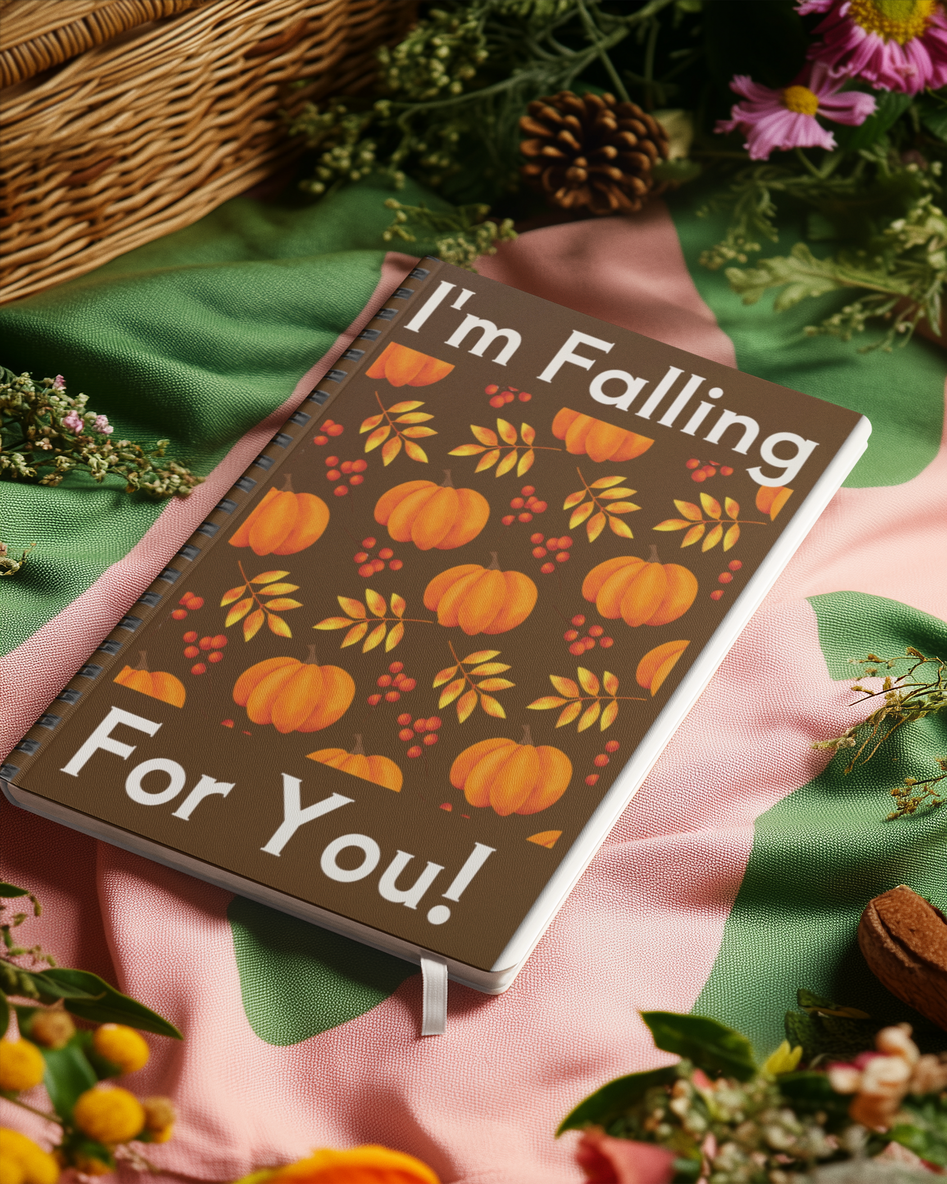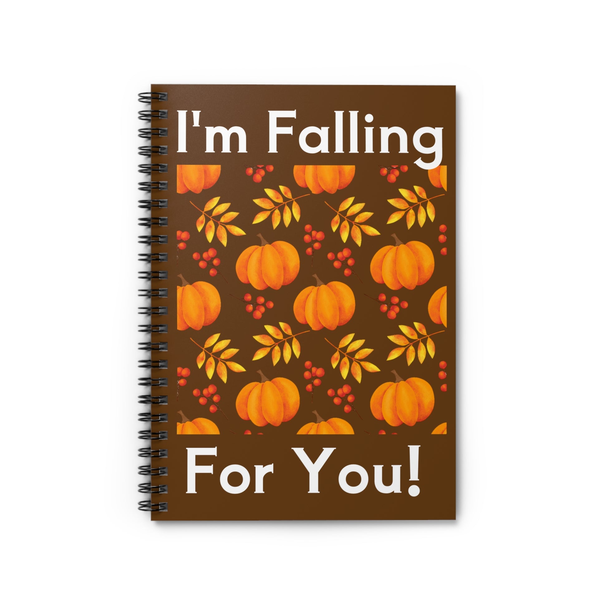 I'm Falling For You notebook is perfect for fall time! Great as a gift, or for your shopping lists, notes, ideas, or poems! It is a 118 page spiral notebook with ruled lined paper. It is a good item to have for your everyday life. The durable printed cover makes the owner proud to carry it everywhere.
