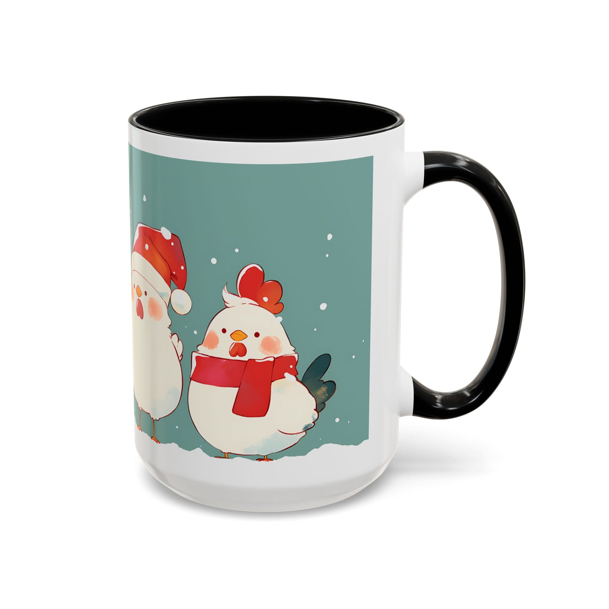 These adorable fat chickies are happy to be out in the snow all bundeled up! That's because they are coming in shortly to have some hot chocolate in this great mug! Available in two sizes: 11oz and 15oz, and four interior colors: red, black, pink and teal.
