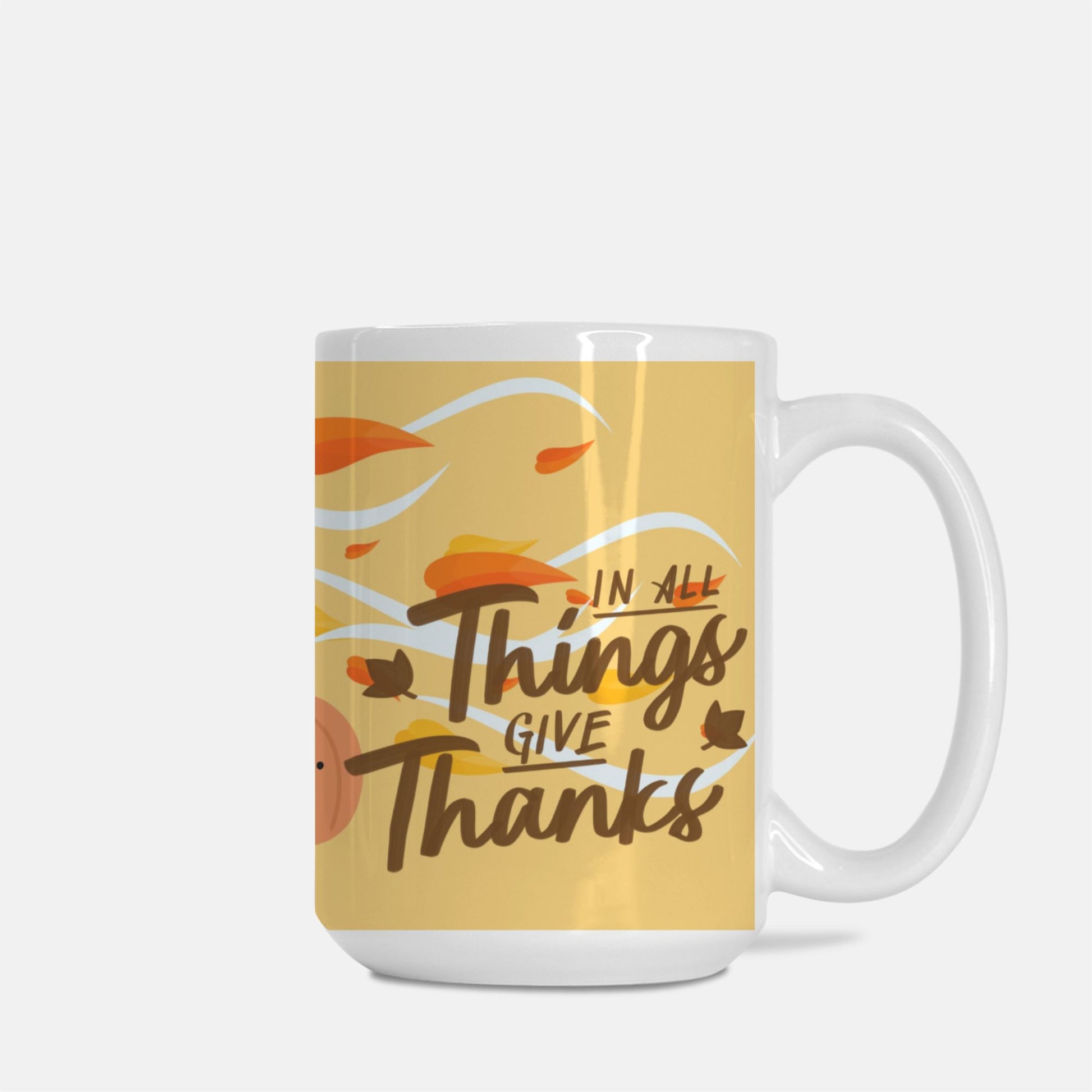 Introducing the "In All Things Give Thanks Mug" — the 15oz vessel of gratitude! Perfect for coffee, tea, or pumpkin spice—that seasonal favorite. With a cheeky reminder to give thanks, this mug accompanies you through windblown days and cozy pumpkin patches. Crafted from pure white ceramic, it’s ready to tackle your daily caffeine dose, while keeping your spirit bright. This mug comes in a gift box with crinkle cut paper ready to send to that special someone!