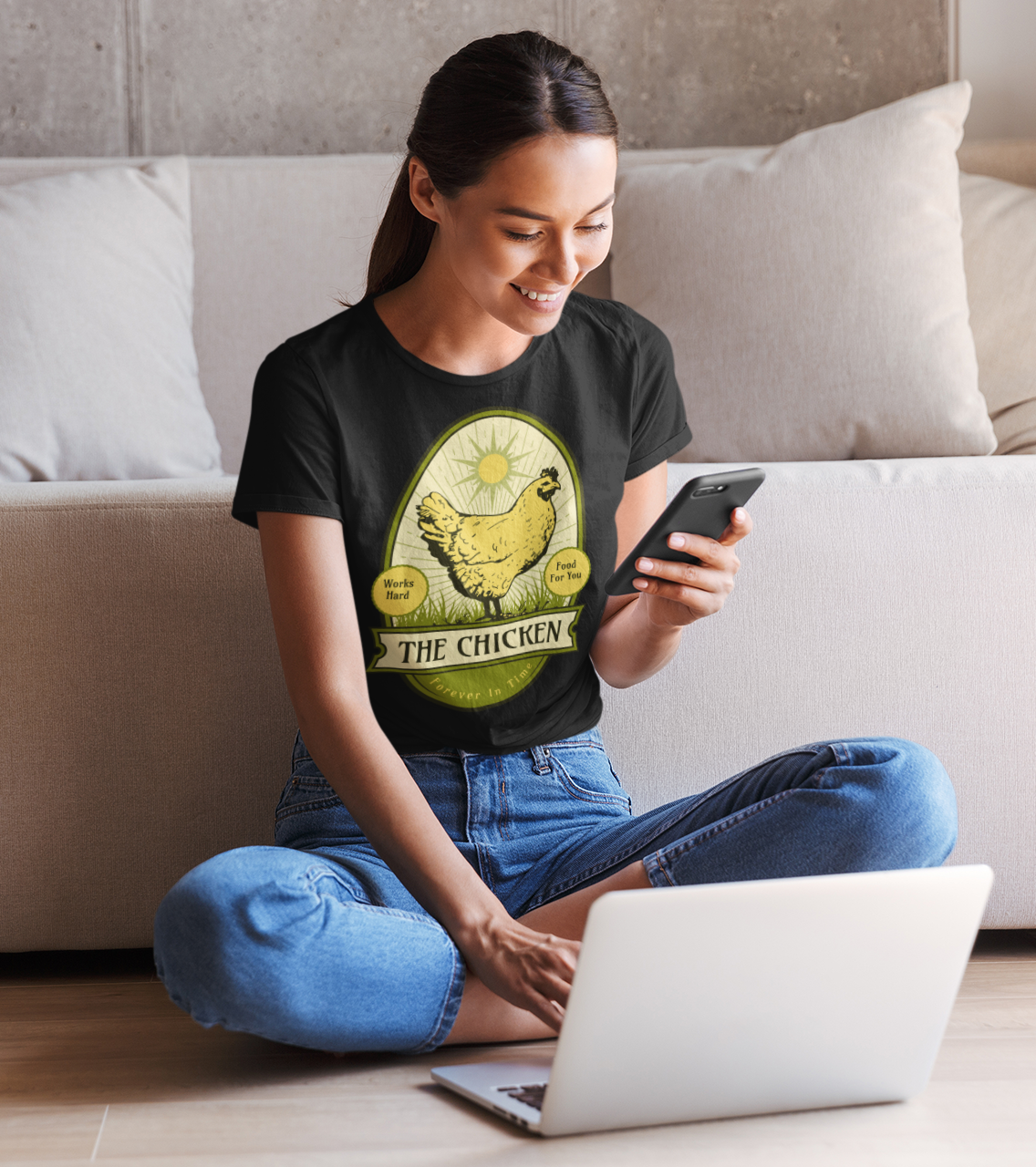 Meet our award-winning chicken - she's quite the sight! Always working hard and happy to do so. Wear her proudly on this comfortable cotton tee.